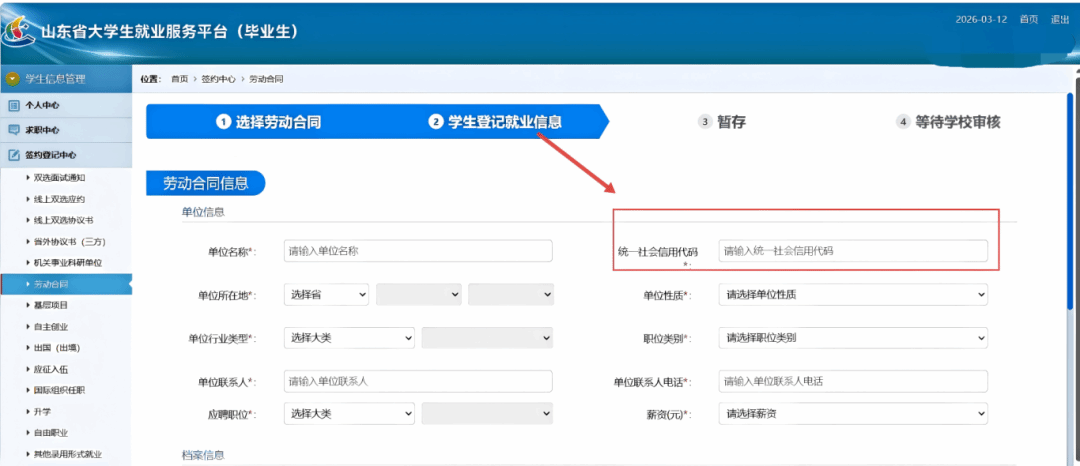 在填写信息中其中需要注意,劳动合同单位名称和社会统一信用代码,请严格填写营业执照中的公司名称全称信息,如不确定,请通过以下网址查询: