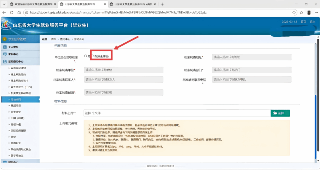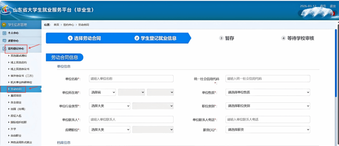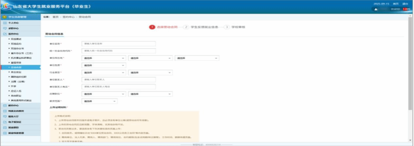 依次点击“签约中心”----“劳动合同就业”进入下图15界面。