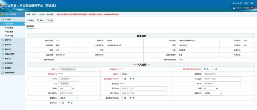 在填写档案信息中,请在“单位是否选择接受档案”这一栏,选“否(回生源地)”。(这个操作非常重要,设计到后续大家的档案派遣,请务必认真对待)