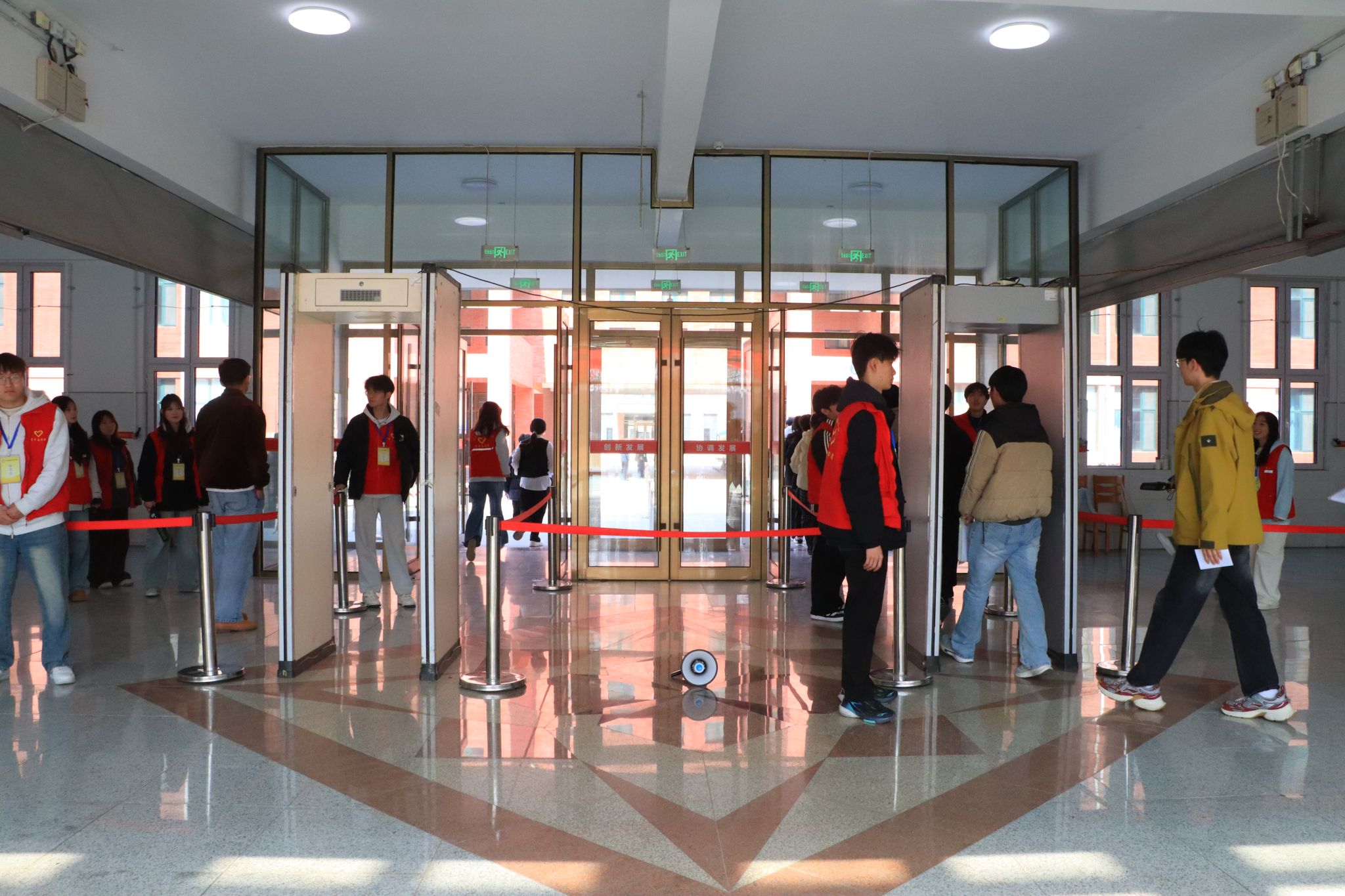 晨曦微露,暖意渐浓,信息工程系护考志愿者与工作人员早早抵达考点,迅速投入工作,以坚守诠释责任,用服务传递温暖。考生陆续抵达后,身着统一志愿马甲的志愿者微笑引导、耐心疏导,主动帮考生搬运行李、指引身份核验,轻声送上鼓励,缓解考生紧张情绪。爱心候考室内,志愿者全程值守、细心照料,用暖心服务传递雷锋精神。候考期间,志愿者还主动协助考生将手机、钥匙等物品分类密封、逐一检查,耐心指导填写个人信息、提醒核对细节,避免因疏忽影响考试。考场内外,志愿者与工作人员分工协作、默契配合,涵盖安检引导、考场指引、物品寄存、设备排查、考后疏导等各个环节,用细致贴心的服务,为考生搭建起安全、便捷、暖心的逐梦通道。